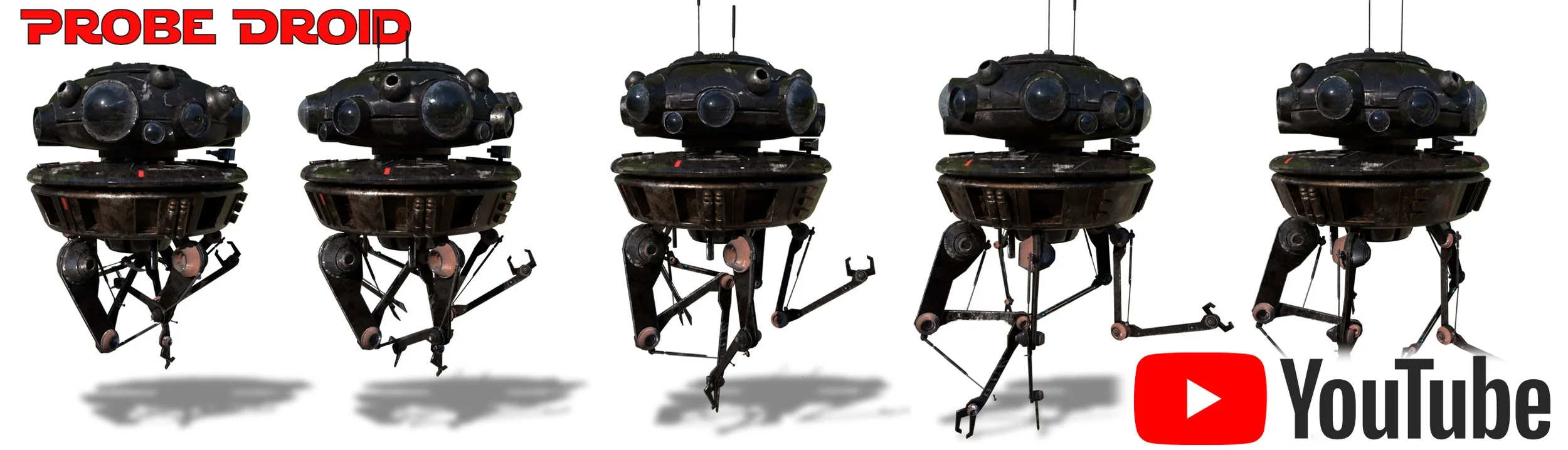 Click Here for Probe Droid construction videos - my process and final results. I’ve had the model for several years. Gathered reference online…images, models, videos. Finally working on doing some projects with him.